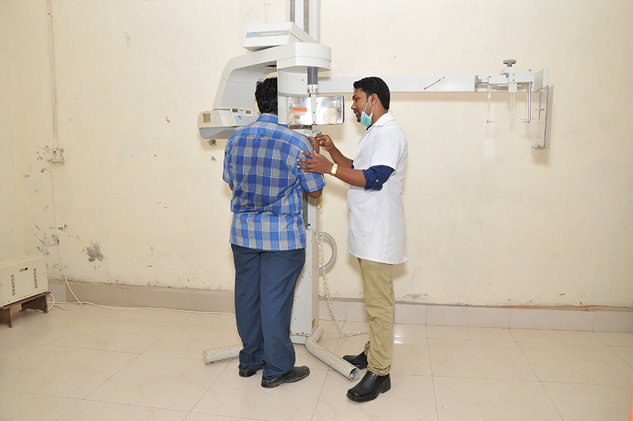 The department of oral medicine and maxillofacial radiology is headed by Professor Dr. Sumal.V.Raj, He is assisted by Dr. Abhilash.R.Krishnan, Senior lecturer, Dr. Minu Mohan and Dr. Sujith Prakash, lecturers. Apart from seeing the routine OP cases we also perform diagnostic test and management of premalignancies, other mucosal lesions, skin and bony pathologies. Temperomandibular joint disorders are also being diagnosed and successfully treated in the department. With a systematic approach and team work of dedicated faculty, we also diagnose undetermined systemic diseases since “mouth is the mirror of the body”. The department is well equipped with most modern diagnostic amenities like digital radiography, orthopantomogram and cephalogram.